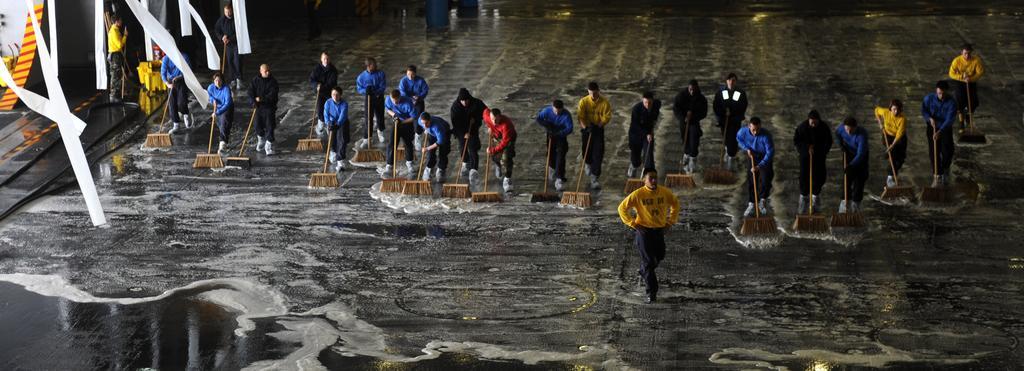 Keywords: US Navy 101215-N-2475A-084 Sailors scrub the deck aboard USS John C. Stennis (CVN 74).jpg en PACIFIC OCEAN Dec 15 2010 Sailors scrub the deck in the hangar bay aboard the Nimitz-class aircraft carrier USS John C Stennis CVN 74 John C Stennis will conduct sea trials as the final phase of a six-month planned incremental availability in the Puget Sound Naval Shipyard and Intermediate Maintenance Facility U S Navy photo by Mass Communication Specialist 3rd Class Kenneth Abbate/Released 2010-12-15 101215-N-2475A-084 Navy http //www navy mil/view_image asp id 95570 U S Navy photo by Mass Communication Specialist 3rd Class Kenneth Abbate PD-USGov-Military-Navy Aboard USS John C Stennis CVN-74 |
