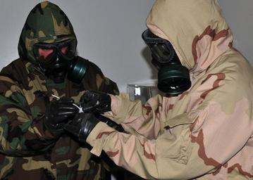 | Keywords: US Navy 101409-N-6753D-003 Chief Explosive Ordnance Disposal Technician Jeff Rotherham demonstrates the proper collection procedure of a biological.jpg  en SAN DIEGO Sept 9 2010 Chief Explosive Ordnance Disposal Technician Jeff Rotherham assigned to Explosive Ordnance Disposal Training and Evaluation Unit EODTEU 1 demonstrates the proper collection procedure of a biological sample in a suspect clandestine biological warfare agent production facility U S Navy photo by Mass communication Specialist Second Class Elizabeth J Dumolt/Released 2010-09-09 101409-N-6753D-003 Navy http //www navy mil/view_image asp id 91790 U S Navy photo by Mass communication Specialist Second Class Elizabeth J Dumolt PD-USGov-Military-Navy Images from US Navy location San Diego California Military protective clothing Males wearing gas masks M40 Field Protective Mask |