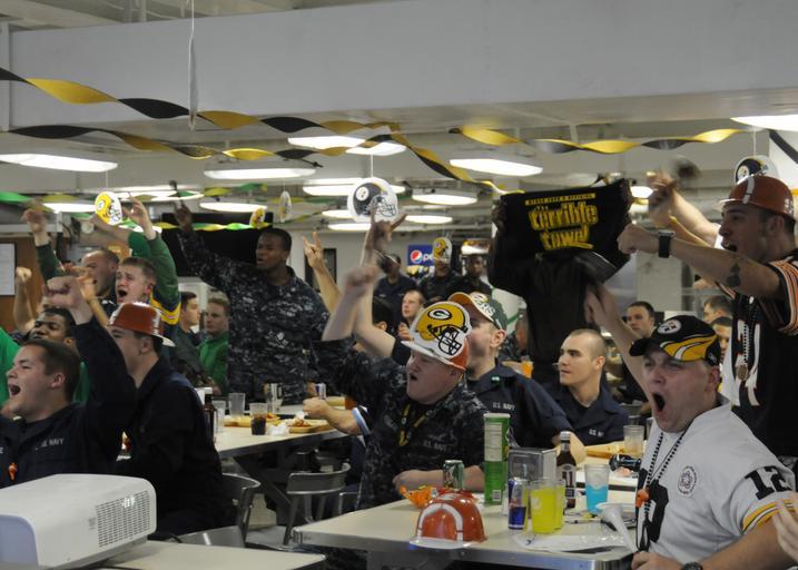 | Keywords: US Navy 110207-N-6307R-031 Sailors in the mess decks aboard the aircraft carrier USS Carl Vinson (CVN 70) watch Super Bowl XLV.jpg en ARABIAN SEA Feb 7 2011 Sailors in the mess decks aboard the aircraft carrier USS Carl Vinson CVN 70 watch Super Bowl XLV The Carl Vinson Carrier Strike Group is deployed supporting maritime security operations and theatre security cooperation efforts in the U S 5th Fleet area of responsibility U S Navy photo by Mass Communication Specialist 3rd Class Heather Roe/Released 2011-02-07 110207-N-6307R-031 Navy http //www navy mil/view_image asp id 97303 U S Navy photo by Mass Communication Specialist 3rd Class Heather Roe PD-USGov-Military-Navy Aboard USS Carl Vinson CVN-70 Super Bowl XLV |