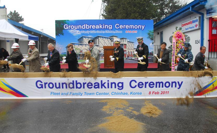 Keywords: US Navy 110208-N-6832D-022 Guests of honor break ground during a ceremony to mark the start of construction on the Fleet and Family Town Center at.jpg en CHINHAE Republic of Korea Feb 8 2011 Guests of honor break ground during a ceremony to mark the start of construction on the Fleet and Family Town Center at Commander Fleet Activities Chinhae The new facility will consolidate community support and service functions into one multi-story building U S Navy photo by Mass Communication Specialist 1st Class Brianna K Dandridge/Released 2011-02-08 110208-N-6832D-022 Navy http //www navy mil/view_image asp id 97373 U S Navy photo by Mass Communication Specialist 1st Class Brianna K Dandridge PD-USGov-Military-Navy Images from US Navy location Jinhae South Korea Commander Fleet Activities Chinhae Ground-breaking ceremonies |