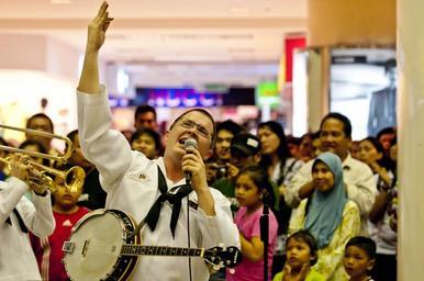 Keywords: US Navy 110228-N-CZ945-010 Musician 2nd Class Charlie Perkes of the U.S. 7th Fleet Band, Far East Edition, performs for more than 2,800 spectators.jpg en KOTA KINABALU Malaysia Feb 28 2011 Musician 2nd Class Charlie Perkes of the U S 7th Fleet Band Far East Edition performs for more than 2 800 spectators at the Centre Point Sabah Mall in Kota Kinabalu Malaysia The band is embarked aboard the U S 7th Fleet command ship USS Blue Ridge LCC 19 Blue Ridge is conducting a spring patrol U S Navy photo by Mass Communication Specialist 2nd Class Kenneth R Hendrix/Released 2011-02-28 110228-N-CZ945-010 Navy http //www navy mil/view_image asp id 98026 U S Navy photo by Mass Communication Specialist 2nd Class Kenneth R Hendrix PD-USGov-Military-Navy Aboard USS Blue Ridge LCC-19 |