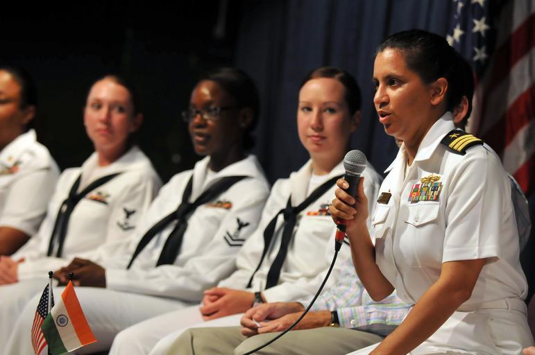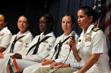 | Keywords: US Navy 110317-N-9818V-445 Cmdr. Shanti Sethi answers questions from female students during an event to commemorate Women's History Month while in.jpg en CHENNAI India March 17 2011 Cmdr Shanti Sethi commanding officer of the Arleigh Burke-class guided-missile destroyer USS Decatur DDG 73 answers questions from female students during an event to commemorate Women's History Month while Decatur is in Chennai India for a port visit Sethi and eight female Sailors from Decatur participated in the event with students from various Chennai colleges and high schools Decator is on a deployment to the U S 7th Fleet area of responsibility U S Navy photo by Mass Communication Specialist 1st Class Jennifer A Villalovos/Released 2011-03-17 110317-N-9818V-445 Navy http //www navy mil/view_image asp id 98783 U S Navy photo by Mass Communication Specialist 1st Class Jennifer A Villalovos PD-USGov-Military-Navy USS Decatur DDG-73 Women's History Month Shanti Sethi |