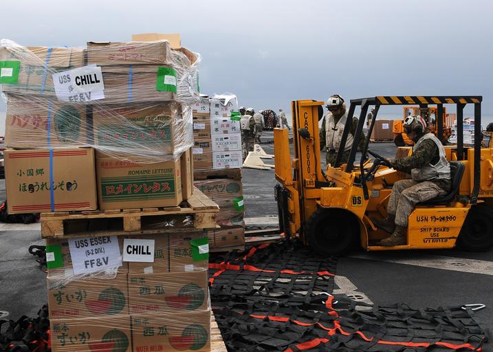Keywords: US Navy 110321-N-4743B-114 Marines load pallets of supplies on the flight deck of the forward-deployed amphibious assault ship USS Essex (LHD 2) du.jpg en PACIFIC OCEAN March 21 2011 Marines load pallets of supplies on the flight deck of the forward-deployed amphibious assault ship USS Essex LHD 2 during a vertical replenishment Essex USS Harpers Ferry LSD 49 and USS Germantown LSD 42 with the embarked 31st Marine Expeditionary Unit are currently operating off the coast of Hachinohe in northeastern Japan in support of Operation Tomodachi U S Navy photo by Mass Communication Specialist 3rd Class Adam M Bennett/Released 2011-03-21 110321-N-4743B-114 Navy http //www navy mil/view_image asp id 98856 U S Navy photo by Mass Communication Specialist 3rd Class Adam M Bennett PD-USGov-Military-Navy Aboard USS Essex LHD-2 Operation Tomodachi in March 2011 |