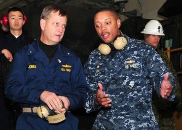 Keywords: US Navy 110327-N-5538K-083 Rear Adm. Jeffery S. Jones, left, discusses humanitarian assistance operations with Capt. Bradley Lee, commander of Amph.jpg en PACIFIC OCEAN March 27 2011 Rear Adm Jeffery S Jones left discusses humanitarian assistance operations with Capt Bradley Lee commander of Amphibious Squadron PHIBRON 11 in the well deck of the forward-deployed amphibious assault ship USS Essex LHD 2 Essex and embarked elements of the 31st Marine Expeditionary Unit 31st MEU are operating off the coast of Kesennuma in northeastern Japan supporting Operation Tomodachi U S Navy photo by Mass Communication Specialist 2nd Class Casey H Kyhl/Released 2011-03-27 110327-N-5538K-083 Navy http //www navy mil/view_image asp id 99088 U S Navy photo by Mass Communication Specialist 2nd Class Casey H Kyhl PD-USGov-Military-Navy Aboard USS Essex LHD-2 Operation Tomodachi in March 2011 Jeffery Jones |