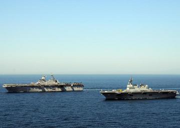 | Keywords: US Navy 110406-N-0120A-512 USS Essex (LHD 2) transits in formation with JS Hyuga (DDH 181).jpg en PACIFIC OCEAN April 6 2011 The forward-deployed amphibious assault ship USS Essex LHD 2 left transits in formation with the Japan Maritime Self-Defense Force ship JS Hyuga DDH 181 Essex and the embarked 31st Marine Expeditionary Unit 31st MEU is operating off the coast of Kesenuma in support of Operation Tomodachi U S Navy photo by Mass Communication Specialist 2nd Class Mark R Alvarez/Released 2011-04-06 110406-N-0120A-512 Navy http //www navy mil/view_image asp id 99639 U S Navy photo by Mass Communication Specialist 2nd Class Mark R Alvarez PD-USGov-Military-Navy General views of USS Essex LHD-2 JS Hyƫga DDH-181 |