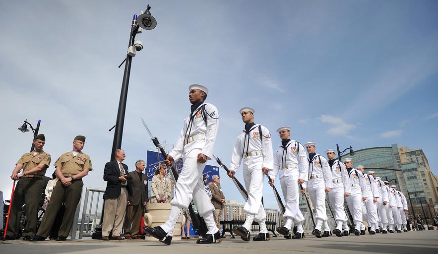 | Keywords: US Navy 110410-N-1810F-024 Members of the U.S. Navy Ceremonial Guard perform during an outdoor reception for Navy Safe Harbor and Wounded Warrior R.jpg en WASHINGTON April 10 2011 Members of the U S Navy Ceremonial Guard perform during an outdoor reception for Navy Safe Harbor and Wounded Warrior Regiment enrollees and their families at the Gaylord National Resort and Convention Center The event marks the beginning of the 2011 Sea-Air-Space Exposition hosted by the Navy League of the United States U S Navy photo by Mass Communication Specialist 2nd Class Todd Frantom/Released 2011-04-10 110410-N-1810F-024 Navy http //www navy mil/view_image asp id 99797 U S Navy photo by Mass Communication Specialist 2nd Class Todd Frantom PD-USGov-Military-Navy Images from US Navy location Washington DC |
