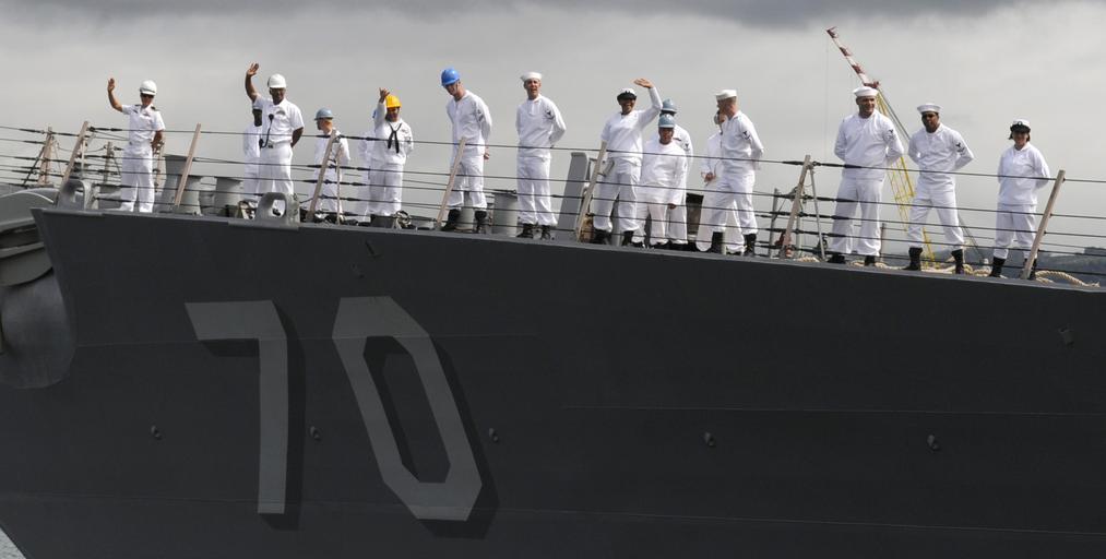 | Keywords: US Navy 110415-N-VM928-037 Sailors man the rails aboard the guided-missile destroyer USS Hopper (DDG 70) as the ship departs Joint Base Pearl Harbo.jpg en PEARL HARBOR April 15 2011 Sailors man the rails aboard the guided-missile destroyer USS Hopper DDG 70 as the ship departs Joint Base Pearl Harbor-Hickam for a scheduled independent deployment Hopper will be conducting operations in the U S 5th and 7th Fleet areas of responsibility U S Navy photo by Mass Communication Specialist 2nd Class Robert Stirrup/Released 2011-04-15 110415-N-VM928-037 Navy http //www navy mil/view_image asp id 99953 U S Navy photo by Mass Communication Specialist 2nd Class Robert Stirrup PD-USGov-Military-Navy Aboard USS Hopper DDG-70 70 number |