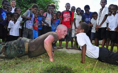 Keywords: US Navy 110420-N-KB563-195 Builder Constructionman Gregory Kaminski, assigned to Naval Mobile Construction Battalion (NMCB) 133, competes in a push.jpg en ESPIRITU SANTO Vanuatu April 20 2011 Builder Constructionman Gregory Kaminski assigned to Naval Mobile Construction Battalion NMCB 133 competes in a push-up competition with a first grade student from Ban Ban primary school during a Pacific Partnership 2011 engineering project Seabees and Vanuatu engineers are building three schoolhouses on the island of Espiritu Santo Pacific Partnership is a five-month humanitarian assistance initiative that will make port visits to Tonga Vanuatu Papua New Guinea Timor-Leste and the Federated States of Micronesia U S Navy photo by Mass Communication Specialist 2nd Class Michael Russell/Released 2011-04-20 110420-N-KB563-195 Navy http //www navy mil/view_image asp id 100274 U S Navy photo by Mass Communication Specialist 2nd Class Michael Russell PD-USGov-Military-Navy Images from US Navy location Espiritu Santo Vanuatu |