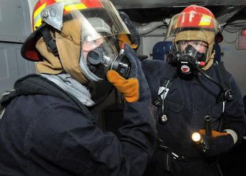 Keywords: US Navy 110510-N-0569K-011 Fire party investigators go on air to breathe through their masks before entering a space to investigate damage during a.jpg en ARABIAN SEA May 10 2011 Fire party investigators go on air to breathe through their masks before entering a space to investigate damage during a general quarters drill aboard the aircraft carrier USS Enterprise CVN 65 Enterprise and Carrier Air Wing CVW 1 are conducting close-air support missions as part of Operation Enduring Freedom in the U S 5th Fleet area of responsibility U S Navy photo by Mass Communication Specialist Seaman Jared M King/Released 2011-05-10 110510-N-0569K-011 Navy http //www navy mil/view_image asp id 100863 U S Navy photo by Mass Communication Specialist Seaman Jared M King PD-USGov-Military-Navy Aboard USS Enterprise CVN-65 |