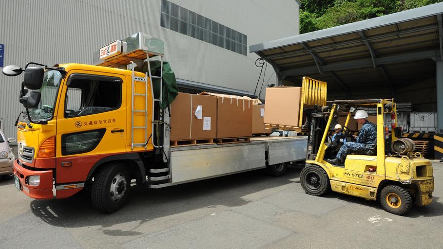 Keywords: US Navy 110510-N-6720T-004 Logistics Specialist 1st Class Joey Bean, assigned to the aircraft carrier USS George Washington (CVN 73), moves boxes o.jpg en YOKOSUKA Japan May 10 2011 Logistics Specialist 1st Class Joey Bean assigned to the aircraft carrier USS George Washington CVN 73 moves boxes of blankets donated by George Washington Sailors and their families onto a flatbed truck outside one of George Washington's warehouses The blankets will be delivered to areas in Japan hit hardest by a 9 0 magnitude earthquake and subsequent tsunami that struck Japan on March 11 George Washington is the Navy's only permanently forward-deployed aircraft carrier U S Navy photo by Mass Communication Specialist 3rd Class Adam K Thomas/Released 2011-05-10 110510-N-6720T-004 Navy http //www navy mil/view_image asp id 100760 U S Navy photo by Mass Communication Specialist 3rd Class Adam K Thomas PD-USGov-Military-Navy Aboard USS George Washington CVN-73 Operation Tomodachi HINO Ranger 5th generation Yellow trucks in Japan Hyster forklifts Wagon rigid trucks |