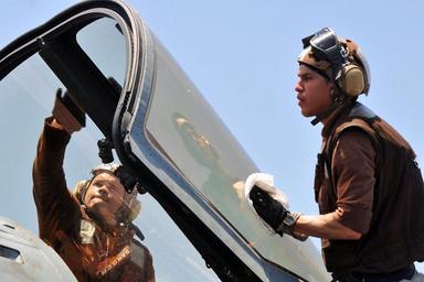 Keywords: US Navy 110520-N-1004S-479 Sailors clean the cockpit shield of an EA-6B Prowler aboard the aircraft carrier Ronald Reagan (CVN 76).jpg en ARABIAN GULF May 20 2011 Aviation Machinist Mate Airman Nathan Pena left from Dallas and Aviation Machinist Mate Airman Scott Hallock from Provo Utah assigned to the Cougars of Tactical Electronic Warfare Squadron VAQ 139 clean the cockpit shield of an EA-6B Prowler aboard the aircraft carrier Ronald Reagan CVN 76 Ronald Reagan and Carrier Air Wing CVW 14 are deployed to the U S 5th Fleet area of responsibility conducting close-air support missions as part of Operations Enduring Freedom and New Dawn U S Navy photo by Mass Communication Specialist 3rd Class Shawn J Stewart/Released 2011-05-20 110520-N-1004S-479 Navy http //www navy mil/view_image asp id 101389 U S Navy photo by Mass Communication Specialist 3rd Class Shawn J Stewart PD-USGov-Military-Navy United States Navy in the Persian Gulf Aircraft cleaning Electronic Attack Squadron 139 United States Navy |