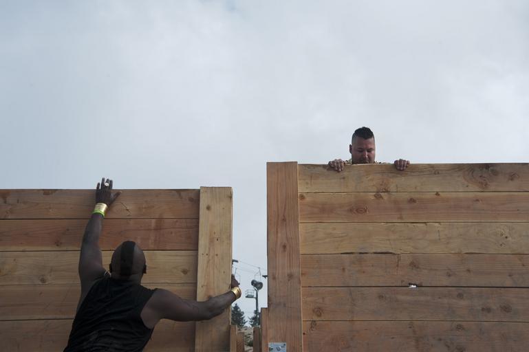 Keywords: US Navy 110528-N-JC271-763 Mass Communication Specialist 2nd Class Rufus Hucks, left, and Mass Communication Specialist 2nd Class Michael D. Blackw.jpg en SNOW VALLEY Calif May 28 2011 Mass Communication Specialist 2nd Class Rufus Hucks left and Mass Communication Specialist 2nd Class Michael D Blackwell II assigned to Fleet Combat Camera Group Pacific climb over a 12-foot wall during the Tough Mudder competition Tough Mudder is a 10-mile obstacle course designed by British special forces to challenge a competitor's strength and endurance U S Navy photo by Mass Communication Specialist 1st Class Matthew D Leistikow/Released 2011-05-28 110528-N-JC271-763 Navy http //www navy mil/view_image asp id 101878 U S Navy photo by Mass Communication Specialist 1st Class Matthew D Leistikow PD-USGov-Military-Navy Images from US Navy location SNOW VALLEY Calif Obstacle courses |