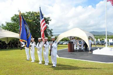| Keywords: US Navy 110603-N-RR409-659 Members of a color guard presents the colors during a wreath laying ceremony in commemoration of the 69th anniversary of.jpg en SANTA RITA Guam June 3 2011 Members of a color guard presents the colors during a wreath laying ceremony in commemoration of the 69th anniversary of the Battle of Midway at the World War II Memorial Park at U S Naval Base Guam U S Navy photo by Anna-Victoria Crisostomo/Released 2011-06-03 110603-N-RR409-659 Navy http //www navy mil/view_image asp id 102080 U S Navy photo by Anna-Victoria Crisostomo PD-USGov-Military-Navy Naval Base Guam |