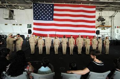 Keywords: US Navy 110603-N-IS680-060 Command Master Chief Martin King places a new master chief petty officer cover on Master Chief Machinery Repairman Jace.jpg en YOKOSUKA Japan June 3 2011 Command Master Chief Martin King places a new master chief petty officer cover on Master Chief Machinery Repairman Jace Marchant while the newest senior chief petty officers aboard the aircraft carrier USS George Washington CVN 73 wait to be pinned George Washington is the Navy's only full-time forward-deployed aircraft carriern U S Navy photo by Mass Communication Specialist Seaman Alysia R Hernandez/Released 2011-06-03 110603-N-IS680-060 Navy http //www navy mil/view_image asp id 102074 U S Navy photo by Mass Communication Specialist Seaman Alysia R Hernandez PD-USGov-Military-Navy Aboard USS George Washington CVN-73 |