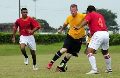 | Keywords: US Navy 110605-N-EP471-215 Lt. Joshua Fair, from Canton, Mich., dribbles the ball toward a defender in an exhibition soccer match during a Continui.jpg en TUMACO Colombia June 5 2011 Lt Joshua Fair from Canton Mich dribbles the ball toward a defender in an exhibition soccer match during a Continuing Promise 2011 community service project Continuing Promise is a five-month humanitarian assistance mission to the Caribbean Central and South America U S Navy photo by Mass Communication Specialist 1st Class Kim Williams/Released 2011-06-05 110605-N-EP471-215 Navy http //www navy mil/view_image asp id 102115 U S Navy photo by Mass Communication Specialist 1st Class Kim Williams PD-USGov-Military-Navy Images from US Navy location TUMACO Colombia Association football matches in Colombia Association football in the United States Navy |