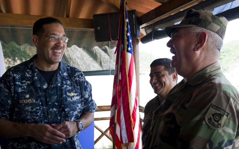 Keywords: US Navy 110617-N-RM525-113 Commodore Brian Nickerson, mission commander of Continuing Promise 2011, meets with Major Gen. Denis Membreno Rivas, the.jpg en SAN JUAN DEL SUR Nicaragua June 17 2011 Commodore Brian Nickerson mission commander of Continuing Promise 2011 meets with Major Gen Denis Membreno Rivas the Nicaraguan army inspector general during the Continuing Promise opening ceremony in San Juan del Sur Continuing Promise is a five-month humanitarian assistance mission to the Caribbean Central and South America U S Navy photo by Mass Communication Specialist 2nd Class Jonathen E Davis/Released 2011-06-17 110617-N-RM525-113 Navy http //www navy mil/view_image asp id 102770 U S Navy photo by Mass Communication Specialist 2nd Class Jonathen E Davis PD-USGov-Military-Navy Images from US Navy location SAN JUAN DEL SUR Nicaragua |