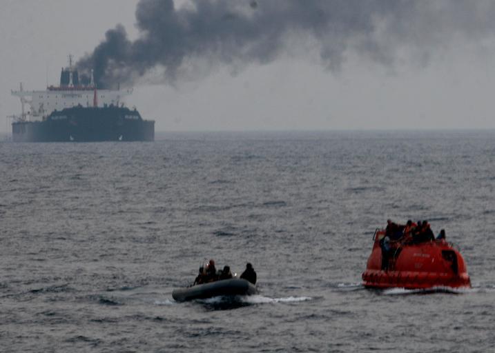 | Keywords: US Navy 110706-N-ZZ999-063 Sailors assigned to USS Philippine Sea (CG 58) approach a life boat to rescue crew members from MT Brilliante Virtuoso.jpg en GULF OF ADEN July 6 2011 Sailors assigned to the guided-missle cruiser USS Philippine Sea CG 58 approach a life boat to rescue crew members from the Liberian-flagged motor vessel MT Brilliante Virtuoso The crew of Brilliante Virturoso abandoned ship due to a fire aboard the vessel U S Navy photo by Chief Intelligence Specialist Raynald Lenieux/Released 2011-07-06 110706-N-ZZ999-063 Navy http //www navy mil/view_image asp id 103664 U S Navy photo by Chief Intelligence Specialist Raynald Lenieux PD-USGov-Military-Navy Aboard USS Philippine Sea CG-58 Sea rescue Brilliante Virtuoso ship 1992 |