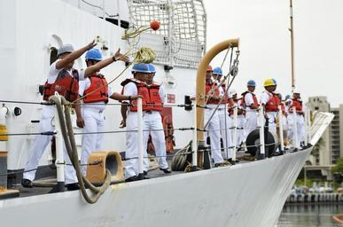Keywords: US Navy 110727-N-WP746-100 A sailor aboard the Philippine navy frigate BRP Gregorio del Pilar (PF-15) throws a line as the ship arrives at Joint Ba.jpg en PEARL HARBOR July 27 2011 A sailor aboard the Philippine navy frigate BRP Gregorio del Pilar PF-15 throws a line as the ship arrives at Joint Base Pearl Harbor-Hickam during a scheduled port visit The ship a former U S Coast Guard cutter is en route to the Republic of the Philippines to join the Philippine navy fleet As a multi-mission surface combatant ship Gregorio del Pilar becomes the first gas turbine jet engine-powered vessel in the Philippine navy U S Navy photo by Mass Communication Specialist 2nd Class Mark Logico/Released 2011-07-27 110727-N-WP746-100 Navy http //www navy mil/view_image asp id 104929 U S Navy photo by Mass Communication Specialist 2nd Class Mark Logico PD-USGov-Military-Navy 2011 in Pearl Harbor Images from US Navy location Pearl Harbor Hawaii BRP Gregorio del Pilar PF-15 |