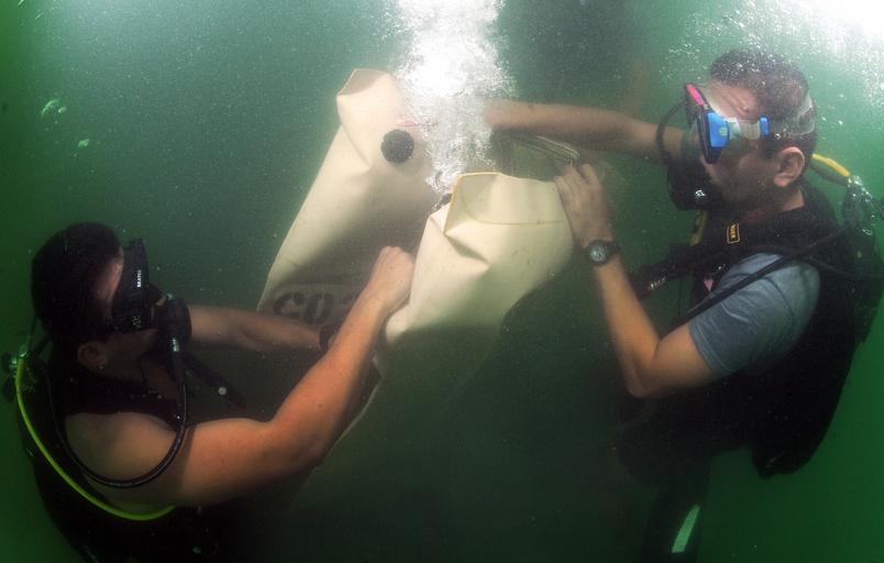 | Keywords: US Navy 110727-N-XD935-079 Navy Diver 3rd Class Bryan Myers, left, assists Antonio Sosa in releasing air out of an underwater lift bag during joint.jpg  en PORT ROYAL Jamaica July 27 2011 Navy Diver 3rd Class Bryan Myers left assigned to Mobile Diving and Salvage Unit MDSU 2 assists Antonio Sosa assigned to the Guatemalan navy in releasing air out of an underwater lift bag during joint diving salvage operations MDSU-2 is participating in Navy Diver-Southern Partnership Station a multinational partnership engagement designed to increase interoperability and partner nation capacity through diving operations U S Navy photo by Mass Communication Specialist 1st Class Jayme Pastoric/Released 2011-07-27 110727-N-XD935-079 Navy http //www navy mil/view_image asp id 104889 U S Navy photo by Mass Communication Specialist 1st Class Jayme Pastoric PD-USGov-Military-Navy Bryan Myers Diving half masks Images from US Navy location Port Royal Jamaica July 2011 in North America Lifting bags Men facing left and looking left Men facing right and looking right Military people in 2011 Military people of Guatemala People of the United States in 2011 People wearing wristwatches Pictures by Mass Communication Specialists Southern Partnership Station 2011 2011 in Jamaica 2011 photographs Underwater photographs of scuba divers 27 July |