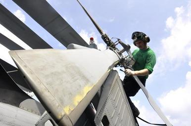 | Keywords: US Navy 110809-N-ZZ999-018 Aviation Machinist's Mate 2nd Class Branden Rucker performs corrosion control on the tail rotor of an SH-60F Sea Hawk he.jpg en SOUTH CHINA SEA Aug 9 2011 Aviation Machinist's Mate 2nd Class Branden Rucker from Pickerington Ohio performs corrosion control on the tail rotor of an SH-60F Sea Hawk helicopter assigned to the Black Knights of Helicopter Anti-Submarine Squadron HS 4 aboard the aircraft carrier USS Ronald Reagan CVN 76 Ronald Reagan is underway in the U S 7th Fleet area of responsibility U S Navy photo by Seaman Nolan Kahn/Released 2011-08-09 110809-N-ZZ999-018 Navy http //www navy mil/view_image asp id 105589 U S Navy photo by Seaman Nolan Kahn PD-USGov-Military-Navy Aviation Machinist's Mate Helicopter tail rotors SH-60F Oceanhawk Helicopter Anti-Submarine Squadron 4 United States Navy Maintenance of military aircraft on USS Ronald Reagan CVN-76 |