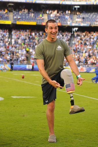 | Keywords: US Navy 110811-N-DM186-076 A Navy Hospital Corpsman from Wounded Warriors Battalion West shows his prosthetic leg during a halftime presentation at.jpg en SAN DIEGO Aug 11 2011 A Navy Hospital Corpsman from Wounded Warriors Battalion West shows his prosthetic leg during a halftime presentation at Qualcomm Stadium during a preseason NFL game between the Seattle Seahawks and the San Diego Chargers U S Navy photo by Mass Communication Specialist 2nd Class Tyler J Wilson/Released 2011-08-11 110811-N-DM186-076 Navy http //www navy mil/view_image asp id 105743 U S Navy photo by Mass Communication Specialist 2nd Class Tyler J Wilson PD-USGov-Military-Navy Military guests at Qualcomm Stadium Halftime show Hospital Corpsman San Diego Chargers games at Qualcomm Stadium Leg prostheses Wounded Warrior Battalion “ West |