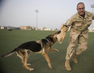 Keywords: US Navy 110826-F-EL833-417 Rado, an 8-year-old German shepherd military working dog, bites Master-At-Arms 1st Class Patrick Yourg during a patrol t.jpg en CAMP LEMONNIER Djibouti Aug 26 2011 Rado an 8-year-old German shepherd military working dog bites Master-At-Arms 1st Class Patrick Yourg during a patrol training exercise U S Air Force photo by Staff Sgt Stephen Linch/Released 2011-08-26 110826-F-EL833-417 Navy http //www navy mil/view_image asp id 109716 U S Air Force photo by Staff Sgt Stephen Linch PD-USGov-Military-Navy Camp Lemonnier Military working dogs of the United States German Shepherd Dog |