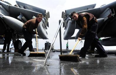 Keywords: US Navy 110915-N-ZZ999-563 Aviation Machinist's Mate Airmen Kevin May, from Fremont, Calif., and Ken Azevedo, from Reno, Nev., clear water off the.jpg en INDIAN OCEAN Sept 15 2011 Aviation Machinist's Mate Airmen Kevin May from Fremont Calif and Ken Azevedo from Reno Nev clear water off the flight deck of the Nimitz-class aircraft carrier USS John C Stennis CVN 74 John C Stennis is deployed to the U S 5th Fleet area of responsibility conducting maritime security operations and support missions as part of Operation Enduring Freedom and New Dawn U S Navy photo by Mass Communication Specialist 2nd Class Walter M Wayman/Released 2011-09-15 110915-N-ZZ999-563 Navy http //www navy mil/view_image asp id 107398 U S Navy photo by Mass Communication Specialist 2nd Class Walter M Wayman PD-USGov-Military-Navy Aboard USS John C Stennis CVN-74 |