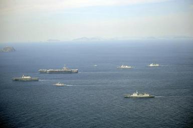 Keywords: US Navy 111003-N-DP652-358 The aircraft carrier USS George Washington (CVN 73) is underway with Republic of Korea naval vessels during a passing ex.jpg en KOREA STRAIT Oct 3 2011 The aircraft carrier USS George Washington CVN 73 is underway with Republic of Korea naval vessels during a passing exercise as the ship departs the Republic of Korea after a 4-day port visit to Busan George Washington is the Navy's only full-time forward-deployed aircraft carrier and is on a scheduled patrol U S Navy photo by Mass Communication Specialist Seaman Erin Devenberg/Released 2011-10-03 111003-N-DP652-358 Navy http //www navy mil/view_image asp id 108238 U S Navy photo by Mass Communication Specialist Seaman Erin Devenberg PD-USGov-Military-Navy Aboard USS George Washington CVN-73 |