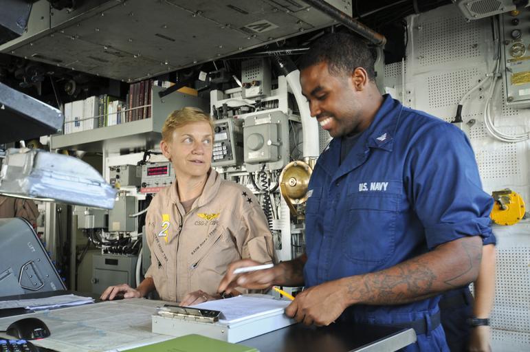 | Keywords: US Navy 111003-N-YM590-028 Rear Adm. Nora Tyson, commander of Carrier Strike Group (CSG) 2, left, speaks with Quartermaster 3rd Class Jamarcus Hard.jpg en ARABIAN SEA Oct 3 2011 Rear Adm Nora Tyson commander of Carrier Strike Group CSG 2 left speaks with Quartermaster 3rd Class Jamarcus Hardy during a visit to the guided-missile cruiser USS Anzio CG 68 Anzio is assigned to Combined Task Force 151 a multi-national mission-based task force established by the Combined Maritime Forces in January 2009 to conduct counter-piracy operations in the Red Sea Gulf of Aden Somali Basin and Arabian Sea U S Navy photo by Mass Communication Specialist 2nd Class Brian M Brooks/Released 2011-10-03 111003-N-YM590-028 Navy http //www navy mil/view_image asp id 108424 U S Navy photo by Mass Communication Specialist 2nd Class Brian M Brooks PD-USGov-Military-Navy USS Anzio CG-68 |