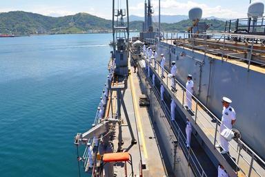 Keywords: US Navy 111011-N-WG146-055 Sailors aboard the submarine tender USS Emory S. Land (AS 39) man the rails as the ship prepares to moor at Kota Kinabal.jpg en SEPANGAR Malaysia Oct 11 2011 Sailors aboard the submarine tender USS Emory S Land AS 39 man the rails as the ship prepares to moor at Kota Kinabalu Naval Base Sepangar as part of a theater security cooperation and friendship visit Emory S Land is on an extended deployment supporting submarine and surface ship maintenance in the U S 7th Fleet area of responsibility U S Navy photo by Mass Communication Specialist 2nd Class Elizabeth Fray/Released 2011-10-11 111011-N-WG146-055 Navy http //www navy mil/view_image asp id 108699 U S Navy photo by Mass Communication Specialist 2nd Class Elizabeth Fray PD-USGov-Military-Navy USS Emory S Land AS-39 |