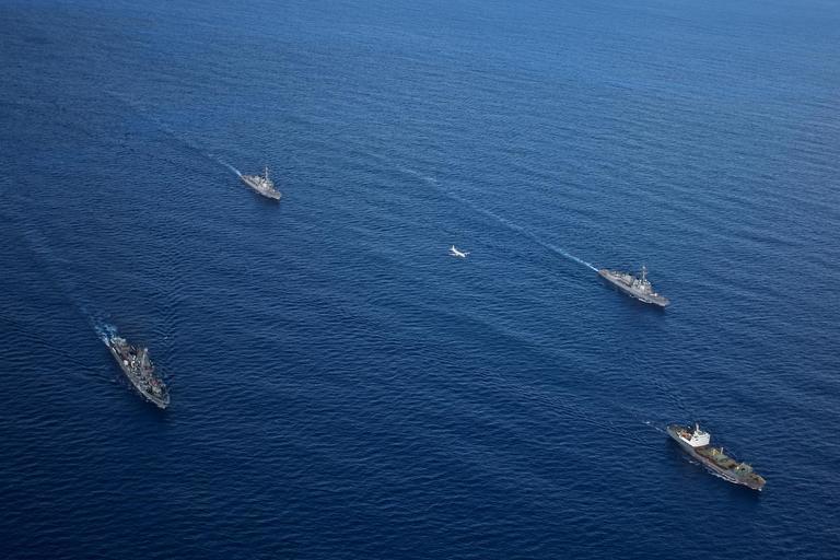| Keywords: US Navy 111015-N-ZZ999-255 The Arleigh Burke-class guided-missile destroyers USS McCampbell (DDG 85) and USS Fitzgerald (DDG 62), and the Russian F.jpg en PHILIPPINE SEA Oct 15 2011 The Arleigh Burke-class guided-missile destroyers USS McCampbell DDG 85 and USS Fitzgerald DDG 62 and the Russian Federation navy Slava-class cruiser RFS Varyag and the tanker Irkut are underway in a diamond formation with a P-3 Orion aircraft flying at the center during exercise Pacific Eagle U S Navy photo by Cmdr Jason W Orender/Released 2011-10-15 111015-N-ZZ999-255 Navy http //www navy mil/view_image asp id 108944 U S Navy photo by Cmdr Jason W Orender PD-USGov-Military-Navy USS McCampbell DDG-85 |