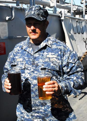 | Keywords: US Navy 111020-N-YT478-006 Chief Warrant Officer 3 Eric Jones, the waterfront maintenance officer for Assault Craft Unit (ACU) 2, holds samples of.jpg en VIRGINIA BEACH Va Oct 20 2011 Chief Warrant Officer 3 Eric Jones the waterfront maintenance officer for Assault Craft Unit ACU 2 holds samples of the traditional F-76 diesel fuel and the 50/50 blend biofuel during a public briefing at Joint Expeditionary Base Little Creek-Fort Story Utilizing technology like biofuel supports the Secretary of the Navy SECNAV the Honorable Ray Mabus' goal to reduce petroleum consumption by 50 percent by 2015 U S Navy photo by Mass Communication Specialist 1st Class Lolita Lewis/Released 2011-10-20 111020-N-YT478-006 Navy http //www navy mil/view_image asp id 109212 U S Navy photo by Mass Communication Specialist 1st Class Lolita Lewis PD-USGov-Military-Navy Joint Expeditionary Base Little Creek-Fort Story Biofuels |