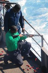 Keywords: US Navy 111031-N-UO379-051 Aviation Boatswain's Mate (Equipment) Airman Jovon Dupree, from Clarksville, N.C., fires a Mossberg 500 shotgun.jpg en PACIFIC OCEAN Oct 31 2011 Aviation Boatswain's Mate Equipment Airman Jovon Dupree from Clarksville N C fires a Mossberg 500 shotgun on the fantail of the aircraft carrier USS Ronald Reagan CVN 76 during a weapons handling evolution Ronald Reagan is conducting routine training in the eastern Pacific Ocean Ronald Reagan is homeported in San Diego U S Navy photo by Mass Communication Specialist 3rd Class Alexander Tidd/Released 2011-10-31 111031-N-UO379-051 Navy http //www navy mil/view_image asp id 109865 U S Navy photo by Mass Communication Specialist 3rd Class Alexander Tidd PD-USGov-Military-Navy Firearms training on USS Ronald Reagan CVN-76 Mossberg 500 |