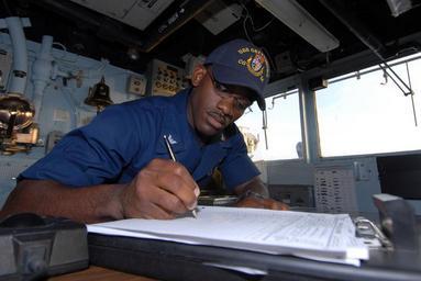 Keywords: US Navy 111105-N-DU438-039 Quartermaster 3rd Class Brandon Shannon writes an entry into the ship's deck log during a quartermaster watch.jpg en ARABIAN SEA Nov 5 2011 Quartermaster 3rd Class Brandon Shannon writes an entry into the ship's deck log during a quartermaster watch in the ship's pilot house aboard the guided-missile cruiser USS Gettysburg CG 64 Gettysburg is deployed to the U S 5th Fleet area of responsibility conducting maritime security operations and support missions as part of Operations Enduring Freedom and New Dawn U S Navy photo by Mass Communication Specialist 3rd Class Betsy Knapper/Released 2011-11-05 111105-N-DU438-039 Navy http //www navy mil/view_image asp id 109969 U S Navy photo by Mass Communication Specialist 3rd Class Betsy Knapper PD-USGov-Military-Navy Aboard USS Gettysburg CG-64 |