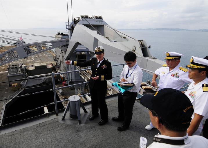 | Keywords: US Navy 111112-N-WJ771-067 Cmdr. Carol McKenzie, commanding officer of the forward-deployed amphibious dock landing ship USS Germantown (LSD 42), d.jpg en WHITE BEACH NAVAL FACILITY Okinawa Nov 12 2011 Cmdr Carol McKenzie commanding officer of the forward-deployed amphibious dock landing ship USS Germantown LSD 42 describes the ship's capabilities to members of the Japan Maritime Self-Defense Force and local dignitaries during a tour Germantown was open to the public Nov 12-13 as part of the White Beach Festival a two-day open-base event sponsored by Commander Fleet Activities Okinawa U S Navy photo by Mass Communication Specialist 2nd Class Casey H Kyhl/Released 2011-11-12 111112-N-WJ771-067 Navy http //www navy mil/view_image asp id 110397 U S Navy photo by Mass Communication Specialist 2nd Class Casey H Kyhl PD-USGov-Military-Navy Aboard USS Germantown LSD-42 |