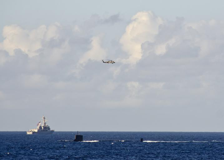 | Keywords: US Navy 111114-N-RI884-298 A helicopter from the Japan Maritime Self-Defense Force (JMSDF) helicopter destroyer JS Kurama (DDH 144) flies during tr.jpg en PACIFIC OCEAN Nov 14 2011 A helicopter from the Japan Maritime Self-Defense Force JMSDF helicopter destroyer JS Kurama DDH 144 flies over the guided-missile destroyer USS Chafee DDG 90 and Virginia-class submarine USS Hawaii SSN 776 during training as part of the integrated maritime exercise Koa Kai The ships are participating in Koa Kai to prepare independent deployers in multiple warfare areas and provide training in a multi-ship environment U S Navy photograph by Mass Communication Specialist 2nd Class Daniel Barker/Released 2011-11-14 111114-N-RI884-298 Navy http //www navy mil/view_image asp id 110523 U S Navy photograph by Mass Communication Specialist 2nd Class Daniel Barker PD-USGov-Military-Navy USS Chafee DDG-90 |
