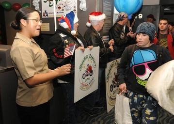 Keywords: US Navy 111213-N-SZ959-010 Interior Communications Electrician 2nd Class Erica Tapia, from the Second Class Petty Officer Association of the aircra.jpg en NORFOLK Dec 13 2011 Interior Communications Electrician 2nd Class Erica Tapia from the Second Class Petty Officer Association of the aircraft carrier USS Theodore Roosevelt CVN 71 cheers for Gold Star families returning from Dallas at Norfolk International Airport during this year's Snowball Express event The Snowball Express sends families of service members who lost their lives in the line of duty on an all-expense paid trip every holiday season This year the Snowball Express sent 1 500 families to Dallas for exclusive events including a concert by Gary Sinise and the Lt Dan Band Theodore Roosevelt is undergoing a 39-month refueling complex overhaul at Huntington Ingalls Industries Newport News Shipbuilding U S Navy photo by Mass Communication Specialist 2nd Class Christopher J Church/Released 2011-12-13 111213-N-SZ959-010 Navy http //www navy mil/view_image asp id 112274 U S Navy photo by Mass Communication Specialist 2nd Class Christopher J Church PD-USGov-Military-Navy Aboard USS Theodore Roosevelt CVN-71 |