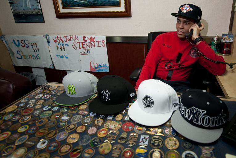 Keywords: US Navy 111214-N-OY799-342 Aviation Ordnanceman 1st Class Gabriel Palin takes a holiday telephone call from N.Y. Yankees Manager Joe Girardi.jpg en ARABIAN GULF Dec 14 2011 Aviation Ordnanceman 1st Class Gabriel Palin takes a holiday telephone call from N Y Yankees Manager Joe Girardi in the command master chief's office aboard the Nimitz-class aircraft carrier USS John C Stennis CVN 74 John C Stennis is deployed to the U S 5th Fleet area of responsibility conducting maritime security operations and support missions as part of Operations Enduring Freedom and New Dawn U S Navy photo by Mass Communication Specialist 3rd Class Kenneth Abbate/Released 2011-12-14 111214-N-OY799-342 Navy http //www navy mil/view_image asp id 112199 U S Navy photo by Mass Communication Specialist 3rd Class Kenneth Abbate PD-USGov-Military-Navy Aboard USS John C Stennis CVN-74 Challenge coins |