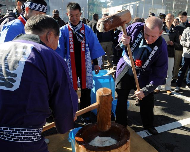 | Keywords: US Navy 111217-N-HF277-027 Vice Adm. Kawamura from the Japanese Maritime Self-Defense Force (JMSDF) and Capt. David Owen, commanding officer of Fle.jpg en YOKOSUKA Japan Dec 17 2011 Vice Adm Kawamura from the Japanese Maritime Self-Defense Force JMSDF and Capt David Owen commanding officer of Fleet Activities Yokosuka pound mochi during the celebration of the 25th annual Chief Petty Officers Mochi Pounding festival at the JMSDF Yokosuka base The celebration is a cultural event to promote teamwork and friendship between the two forces U S Navy photo by Seaman Cyd M Vargas/Released 2011-12-17 111217-N-HF277-027 Navy http //www navy mil/view_image asp id 112464 U S Navy photo by Seaman Cyd M Vargas PD-USGov-Military-Navy Images from US Navy location YOKOSUKA Japan Mochi pounding |