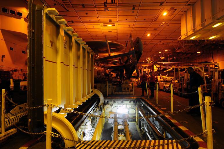 MAKE A MEME View Large Image Navy 120112-N-MD252-251 Sailors move missiles into the hangar bay on a weapons elevator aboard the Nimitz-class aircraft carrier USS Carl Vinson.jpg en ARABIAN SEA Jan 12 2011 Sailors move missiles into the hangar bay on a weapons elevator ...