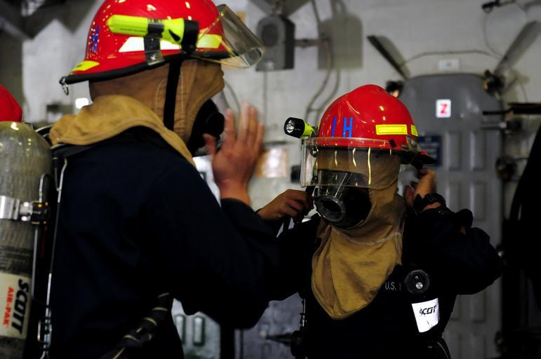 | Keywords: US Navy 120114-N-GF386-147 Sailors from the at-sea fire party help each other don damage control equipment during a fire drill aboard the amphibiou.jpg en ATLANTIC OCEAN Jan 13 2012 Sailors from the at-sea fire party help each other don damage control equipment during a fire drill aboard the amphibious assault ship USS Kearsarge LHD 3 Kearsarge is conducting crew certifications in preparation for future amphibious operations U S Navy photo by Mass Communication Specialist 3rd Class Jonathan Vargas/Released 2012-01-13 120114-N-GF386-147 Navy http //www navy mil/view_image asp id 113587 U S Navy photo by Mass Communication Specialist 3rd Class Jonathan Vargas PD-USGov-Military-Navy Aboard USS Kearsarge LHD-3 |