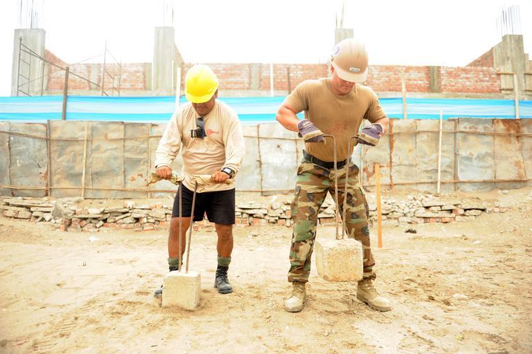 Keywords: US Navy 120125-N-MN502-026 Equipment Operator Justin Holden works with a Peruvian marine to tamp down an area.jpg en ANCON Peru Jan 25 2012 Equipment Operator Justin Holden assigned to Navy Mobile Construction Battalion NCMB 23 embarked aboard High Speed Vessel HSV 2 Swift and a Peruvian marine engineer tamp down an area before installing the floor for a new classroom Peruvian marine combat engineers from Ancon Naval Base and Seabees from NMCB-23 are working at the school as part of a subject matter expert exchange to demolish and rebuild a classroom NMCB-23 is supporting HSV-Southern Partnership Station 2012 a deployment of U S naval assets in the U S Southern Command area of responsibility U S Navy photo by Lt Matthew Comer/ Released 2012-01-25 120125-N-MN502-026 Navy http //www navy mil/view_image asp id 114211 U S Navy photo by Lt Matthew Comer PD-USGov-Military-Navy Images from US Navy location ANCÓN Peru |