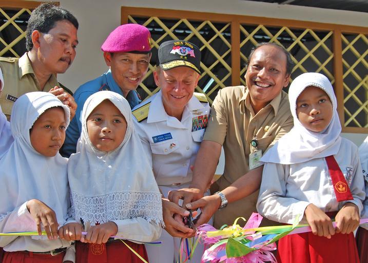 | Keywords: US Navy http-www.navy.mil-management-photodb-photos-100531-N-8539M-175 Rear Adm. Nora W. Tyson, center, commander of Task Force 73, is joined by Indonesian navy Brig. Gen. Halim, center left, the headmaster and students of Weru Village Primary School.jpg en LAMONGON Indonesia May 31 2010 Rear Adm Nora W Tyson center commander of Task Force 73 is joined by Indonesian navy Brig Gen Halim center left the headmaster and students of Weru Village Primary School for an engineering civic action project dedication as part of Naval Engagement Activity NEA 2010 Seabees assigned to Naval Mobile Construction Battalion NMCB 11 and Indonesian marine corps engineers renovated the school building including new floors electrical restrooms and roof NEA is part of the Cooperation Afloat Readiness and Training CARAT series of bilateral exercises held annually in Southeast Asia to strengthen relationships and enhance force readiness U S Navy photo by Lt Mike Morley/Released 2010-05-31 http //www navy mil/management/photodb/photos/100531-N-8539M-175 Navy http //www navy mil/view_image asp id 86343 U S Navy photo by Lt Mike Morley PD-USGov-Military-Navy Images from US Navy location LAMONGON Indonesia Nora Tyson US Navy Rear Adm. Nora W. Tyson, center, commander of Task Force 73, is joined by Indonesian navy Brig. Gen. Halim, center left, the headmaster and students of Weru Village Primary School.jpg en LAMONGON Indonesia May 31 2010 Rear Adm Nora W Tyson center commander of Task Force 73 is joined by Indonesian navy Brig Gen Halim center left the headmaster and students of Weru Village Primary School for an engineering civic action project dedication as part of Naval Engagement Activity NEA 2010 Seabees assigned to Naval Mobile Construction Battalion NMCB 11 and Indonesian marine corps engineers renovated the school building including new floors electrical restrooms and roof NEA is part of the Cooperation Afloat Readiness and Training CARAT series of bilateral exercises held annually in Southeast Asia to strengthen relationships and enhance force readiness U S Navy photo by Lt Mike Morley/Released 2010-05-31 http //www navy mil/management/photodb/photos/100531-N-8539M-175 Navy http //www navy mil/view_image asp id 86343 U S Navy photo by Lt Mike Morley PD-USGov-Military-Navy United States Navy images from East Java Nora Tyson Navy of Indonesia |