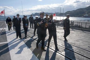 | Keywords: US Navy and Japan Maritime Self-Defense Force Sailors conduct sister ship tours 151218-N-RU971-067.jpg en 151218-N-RU971-067 SASEBO Japan Dec 18 2015 Cmdr Kirk Knox forward-deployed amphibious assault ship USS Bonhomme Richard LHD 6 operations officer and Cmdr Shin Makino executive officer of Japan Maritime Self Defense Force JMSDF Shirane-class destroyer JDS Kurama DDH 144 discuss flight operations while walking the flight deck of Kurama Bonhomme Richard is the lead ship of the Bonhomme Richard Amphibious Ready Group and is forward-deployed to Sasebo Japan in the U S 7th Fleet area of operations U S Navy Photo by Mass Communication Specialist 3rd Class Cameron McCulloch/Released <br>Unit USS Bonhomme Richard LHD 6 2015-12-18 Petty Officer 3rd Class Cameron McCulloch https //www dvidshub net/image/2341353/us-navy-and-japan-maritime-self-defense-force-sailors-conduct-sister-ship-tours 151218-N-RU971-067 2015-12-21 23 55 SASEBO NAGASAKI JP PD-USGov-Military-Navy JS Kurama DDH-144 USS Bonhomme Richard LHD-6 Images from DoD uploaded by FĂŚ |