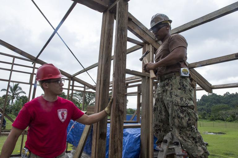 Keywords: US Navy Seabees and US Air Force RED HORSE engineers build a school in Papua New Guinea during Pacific Partnership 150703-N-UQ938-010.jpg en ARAWA Autonomous Region of Bougainville Papua New Guinea July 3 2015 U S Air Force Staff Sgt Ben Preisler left of San Antonio and U S Navy Builder 2nd Class Arturo Arellano of Seattle Wash install framing of a building at the Tupukas Primary School A team of U S Navy Seabees U S Air Force RED HORSE engineers and Australian Regular Army engineers constructed a new building at the site as part of Pacific Partnership 2015 The hospital ship USNS Mercy T-AH 19 is currently in Papua New Guinea for its second mission port of PP15 Pacific Partnership is in its 10th iteration and is the largest annual multilateral humanitarian assistance and disaster relief preparedness mission conducted in the Indo-Asia-Pacific region While training for crisis conditions Pacific Partnership missions to date have provided real world medical care to approximately 270 000 patients and veterinary services to more than 38 000 animals Critical infrastructure development has been supported in host nations during more than 180 engineering projects U S Navy photo by Mass Communication Specialist 1st Class Trevor Andersen/RELEASED 2015-07-03 Petty Officer 1st Class trevor andersen https //www dvidshub net/image/2060779 150703-N-UQ938-010 2015-07-14 12 50 ARAWA PG PD-USGov-Military-Navy USNS Mercy T-AH-19 Pacific Partnership 2015 United States Navy Seabees Images from DoD uploaded by Fæ |