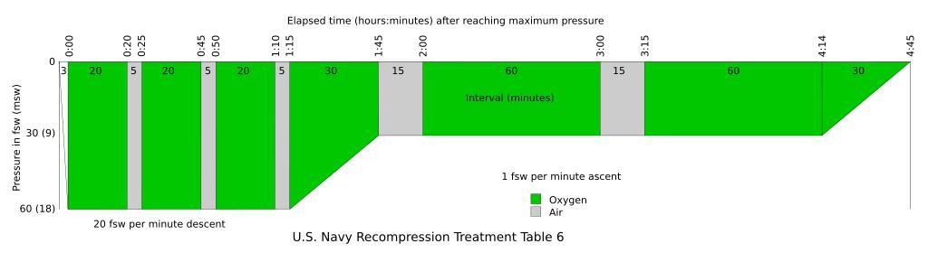 Keywords: US Navy Table 6.svg en Graphic depiction of U S Navy Recompression treatment table 6 2015-11-08 own Peter Southwood other versions cc-zero Decompression tables Uploaded with UploadWizard