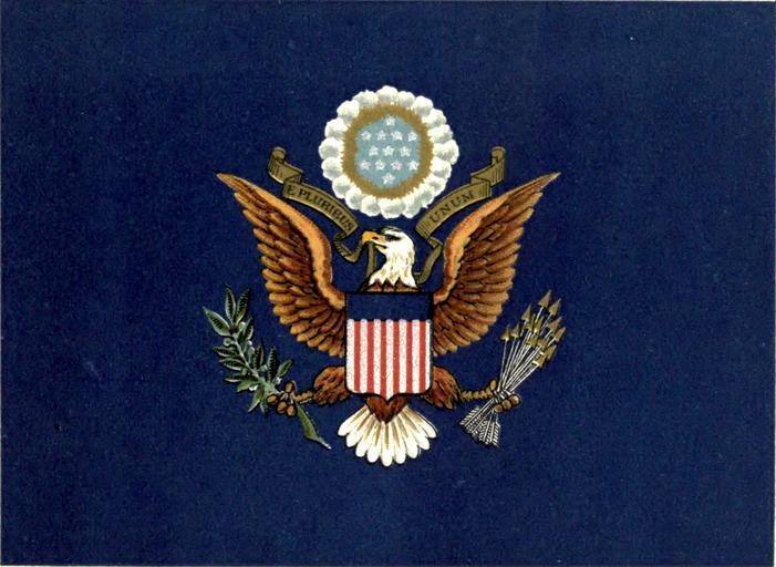 | Keywords: US Presidential Flag Navy 1899.jpg US Presidential Flag Navy 1899 svg The Navy's presidential flag as depicted in 1899 The design was the Great Seal of the United States on a blue field; the flag had just recently been redesigned to better conform with the 1885 update of the Great Seal The original 1882 flag had an all-white eagle and had an arc of stars instead of the full crest The Army had their own presidential flag starting in 1898 until both were replaced in 1916 The 1899 http //www archive org/details/ofmaritimeflagsn00unitrich Flags of Maritime Nations a U S Navy publication image plate 2 1899 U S Navy Bureau of Equipment PD-USGov-Military-Navy PD-US Flag of the President of the United States Personal flags of the United States Navy Blue green red white yellow flags E Pluribus Unum Flags with arrows Flags with banners Flags with branches Flags with eagles Flags with thirteen stars Flags with mottos Flags with white five-pointed stars JPG flags |