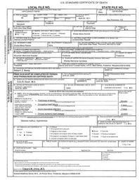 Keywords: US Standard Certificate of Death, 2003.jpg certificate of death from the National Center for Health Statistics in the US Centers for Disease Control and Prevention CDC Taken from page 52 59 including introductory materials in http //www cdc gov/nchs/data/misc/hb_cod pdf Physicians' Handbook on Medical Certification of Death Appendix A Page 52 59 United States Centers for Disease Control and Prevention 2003 thumb left Zoomed view of 'cause of death' and 'significant conditions' statements Death certificates Centers for Disease Control and Prevention publications PD-USGov |