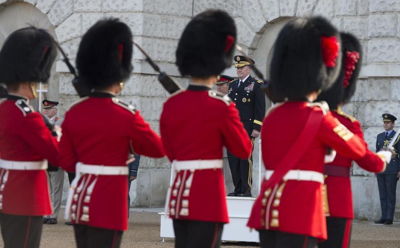 | Keywords: US, UK Joint Chiefs of Staff talk collaboration 140610-D-KC128-094.jpg en Chairman of the Joint Chiefs of Staff U S Army Gen Martin E Dempsey at podium stands at attention with U K Chief of Defense Staff for the British Armed Forces Gen Sir Nickolas Houghton during a Guard of Honor ceremony kicking off a Defense Chiefs Strategic Dialog with the U S Joint Chiefs of Staff and their U K counterparts in London June 10 2014 DOD photo by Mass Communication Specialist 1st Class Daniel Hinton U S Navy/Released 2014-06-10 Petty Officer 1st Class Daniel Hinton https //www dvidshub net/image/1399063 140610-D-KC128-094 2014-06-14 16 05 LONDON GTL GB PD-USGov Martin E Dempsey in 2014 Images from DoD uploaded by Fæ |