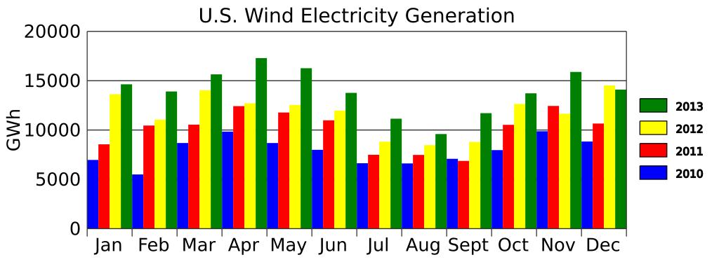 | Keywords: US Wind Generation-2013.svg translate yes en U S wind generation in 2013 in GWh from http //www eia gov/electricity/monthly/index cfm Electric Power Monthly Table 1 1 A 2015-05-14 own Delphi234 other versions cc-zero Uploaded with UploadWizard Wind energy statistics of the United States |